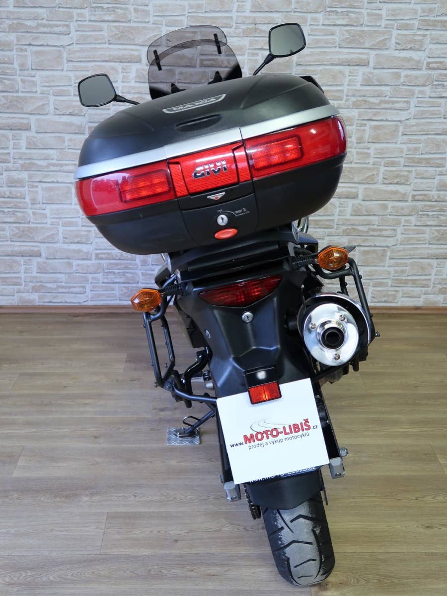 Velmi zachovalý, bohatě vybavený a poctivě udržovaný motocykl z roku 2008, koupený jako nový v ČR. Najeto cca 62600 km, dvě sady klíčů, servisní kniha, návod k obsluze, originální nářadí, výkon 49 kW. Hlavní stojan, kryty rukojetí, padací rám, kovové kryty motoru a chladiče, větrný štít s nastavitelným deflektorem, nosiče bočních kufrů Givi nebo Kappa, horní kufr Givi Maxia, zásuvka na 12V, ukazatel zařazené rychlosti. Motocykl je cca 2000 km po výměně oleje v motoru, olejového filtru, vzduchového filtru a brzdové kapaliny a má platné české doklady a TK do 5/2028. Po zakoupení motocyklu možný odvoz dodávkou až k Vám domů. Můžeme také vykoupit Váš stávající motocykl na protiúčet. Díky naší spolupráci se společností ESSOX si můžete tento motocykl koupit i na splátky. Prohlídka možná pouze po předchozí telefonické dohodě, nemáme pevnou otevírací dobu.